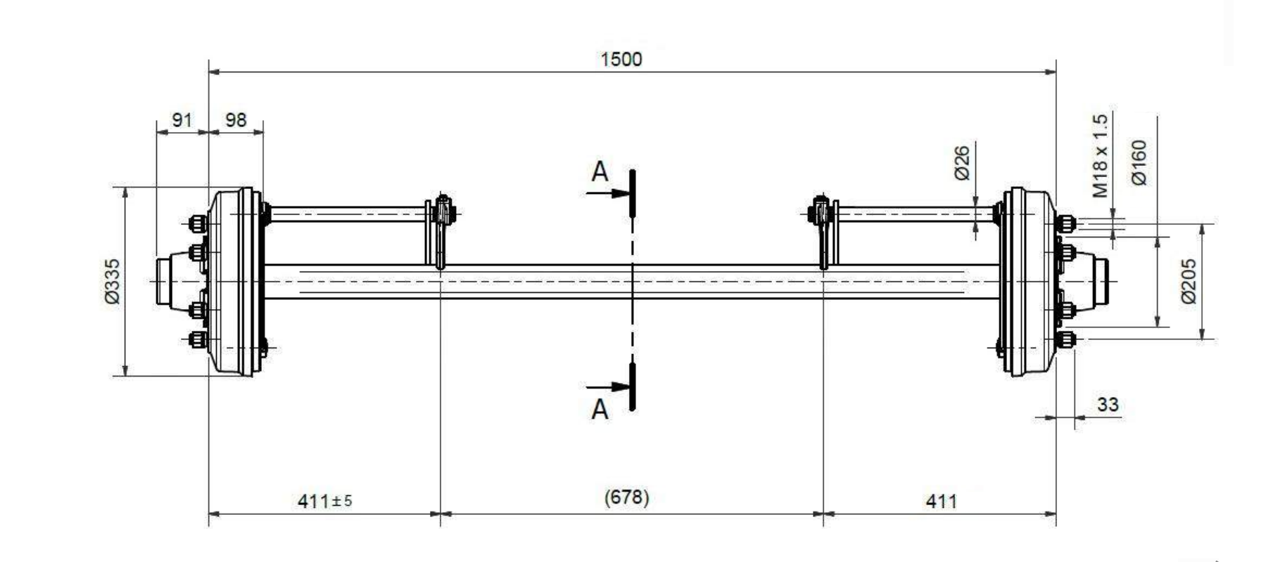 AKSEL TIL TRAILER MED BREMSER (6 SKRUER) - 4800 kg - 1500 mm