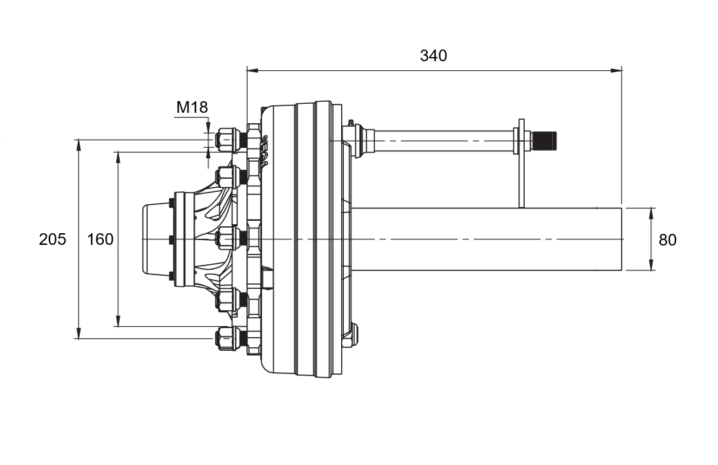 HALVAKSEL MED BREMSER - 4400 kg (6 SKRUER) - 340 mm