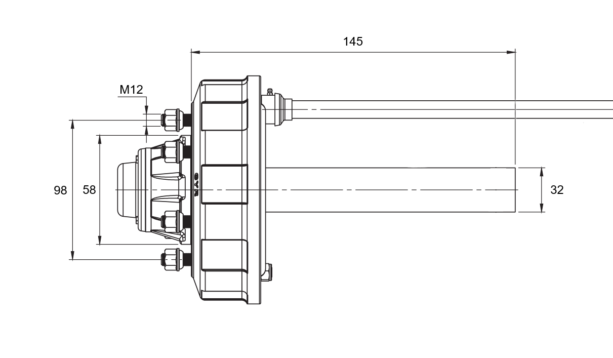 Stubakslen er beregnet til brug på forskellige typer trailere med bremsesystem. Stubakslens længde er 145 mm, med en belastningskapacitet på op til 450 kg.