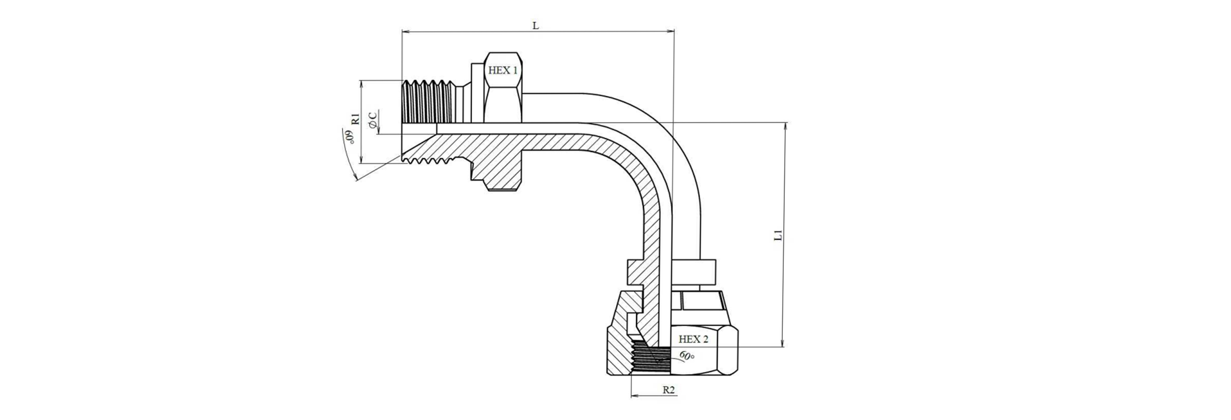 HYDRAULISK BEND 90° BSP HANE-HUNDE 1/2