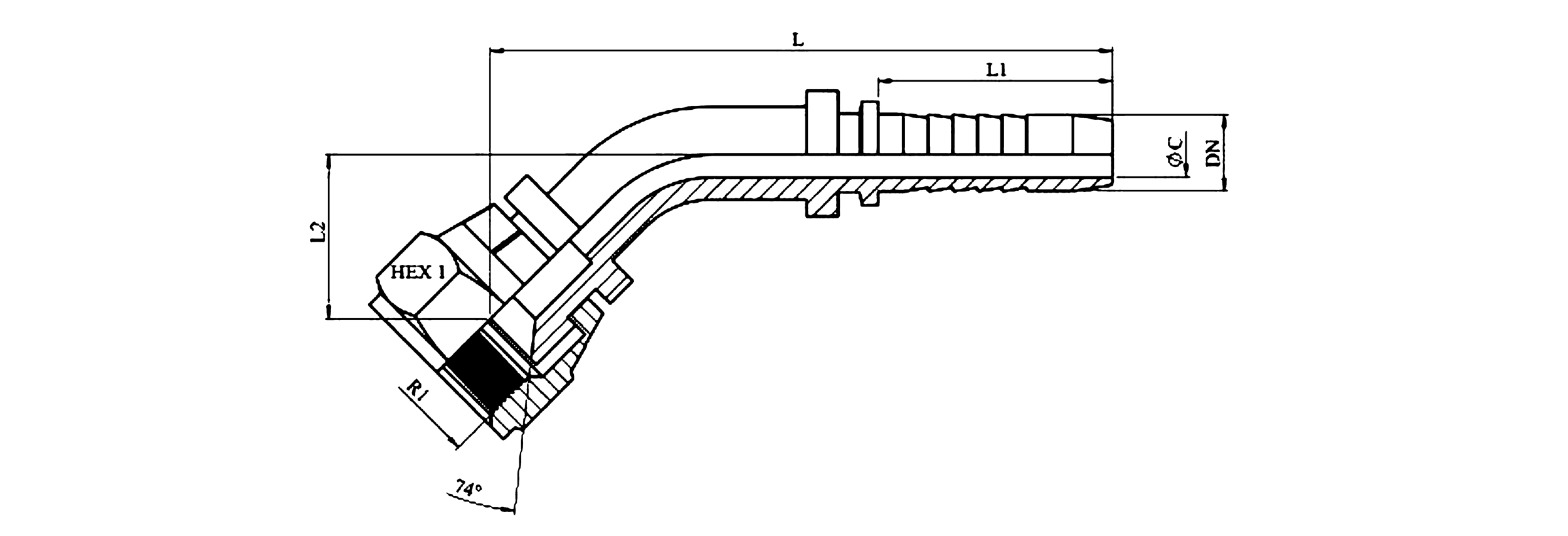 HYDRAULISK FORBINDELSE BSP HUN ELBUE 45° DN13-3/4