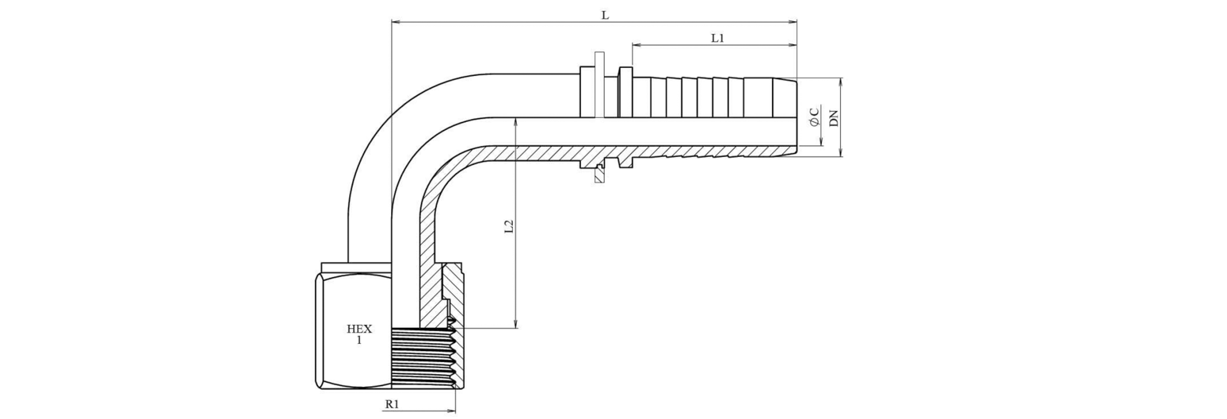 HYDRAULISK FORBINDELSE DKORFS HUN ELBOW 90° DN10-13/16-16