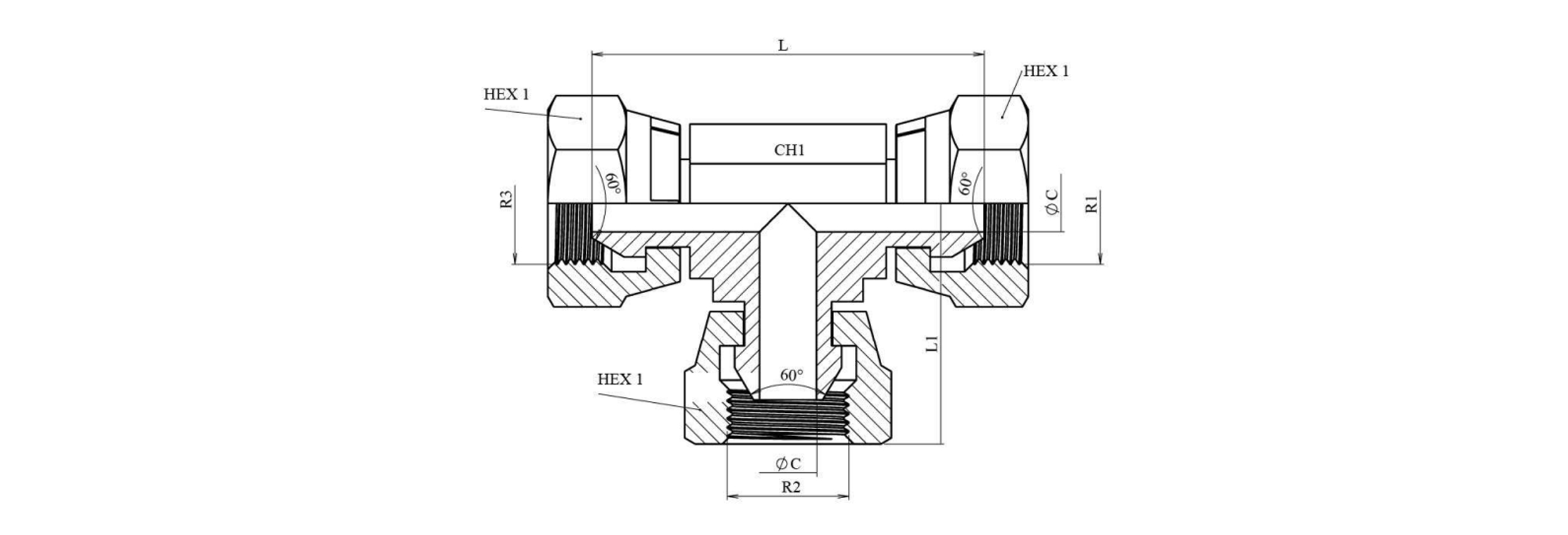 HYDRAULISK T-STYKKE MED DREJEMØTRIK BSP 3/4