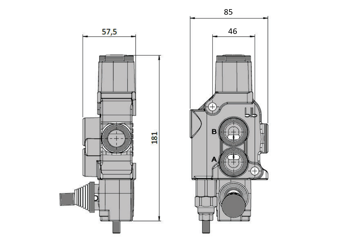 A, B, P og T port - 1/2" |