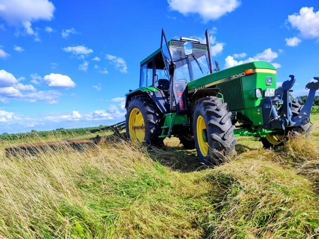 Ena poletna slika naše stranke iz Nemčije, ki si je na svoj John Deere 3040 namestila našo univerzalno čelno hidravliko. S čelno hidravliko vsekakor povečamo učinkovitost dela s traktorjem.