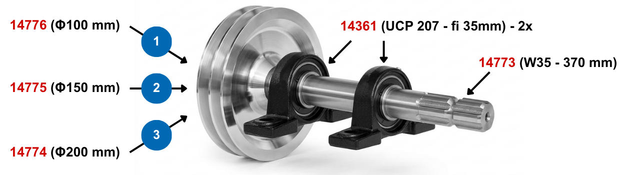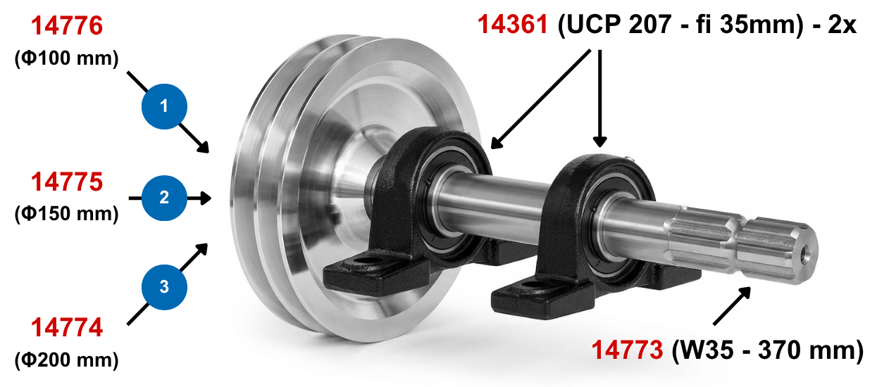 Sestavite si lahko komplet osovine z jermenico glede na svoje potrebe: