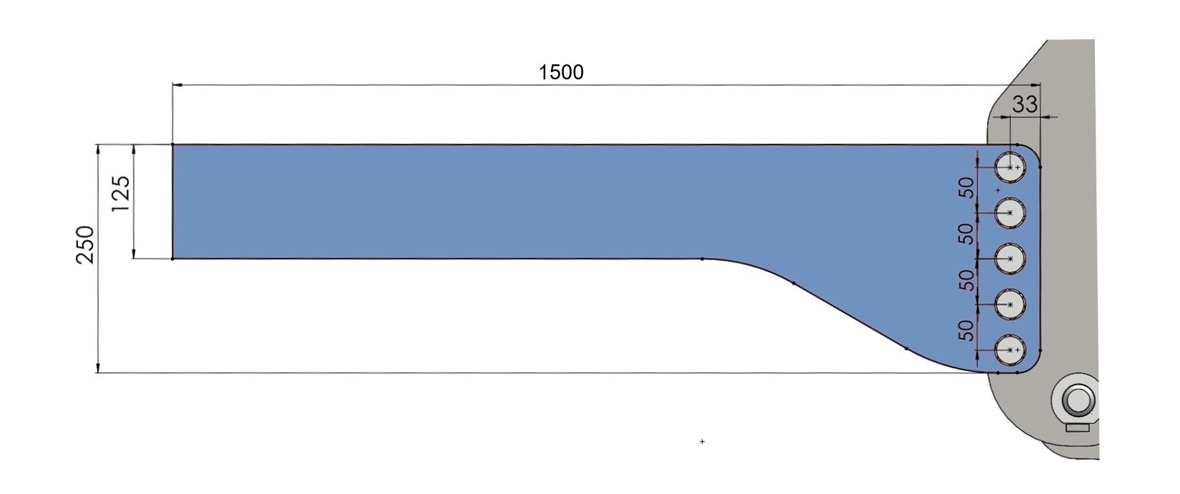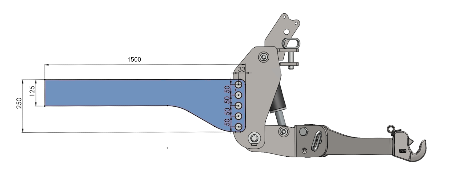 Plošča dolžine 1500 mm se odreže na poljubno dolžino, poleg tega pa se navrtajo luknje za pritrditev na traktor.
